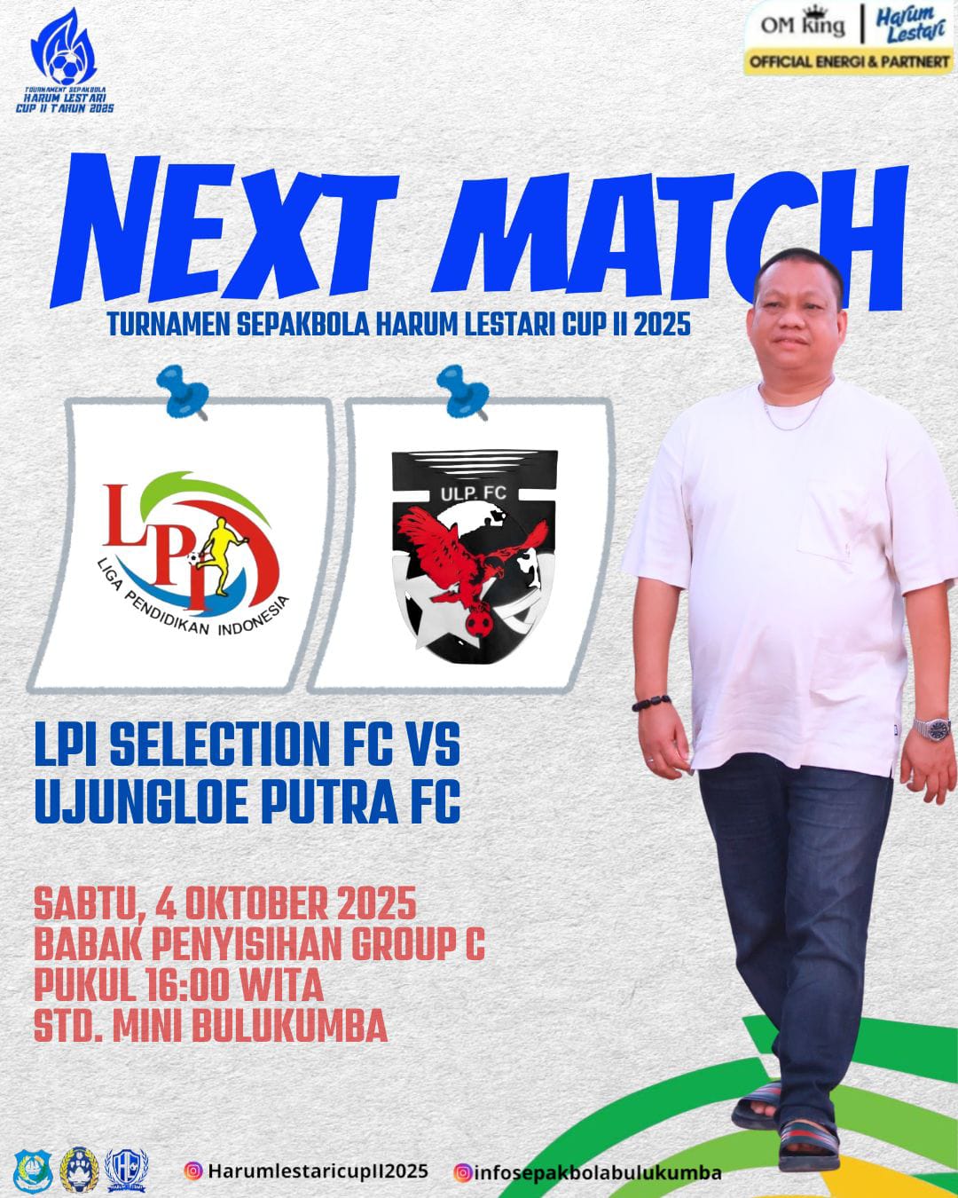 BERITA12PAS.COM – akan tersaji di Stadion Mini Bulukumba pada Sabtu, 4 Oktober 2025, saat LPI Selection FC berhadapan dengan Ujungloe Putra FC dalam lanjutan babak penyisihan Grup C Turnamen Sepakbola Harum Lestari Cup II U 19 2025.